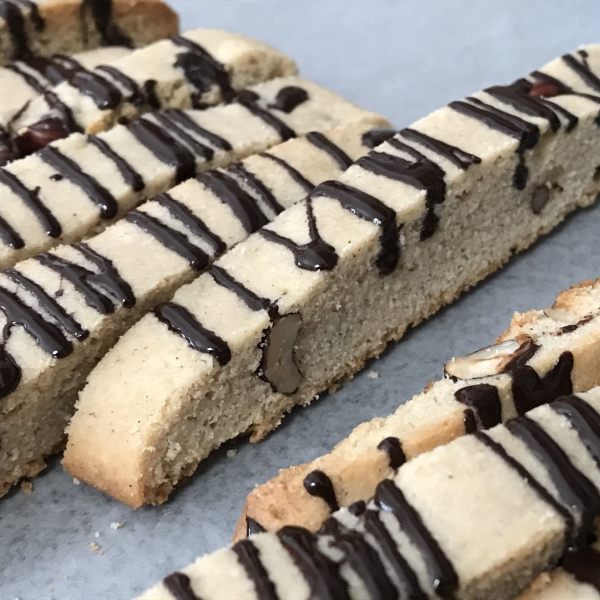 Nutty hazelnut biscotti flavored with cinnamon and vanilla. These are simply delicious with coffee and they smell wonderful!