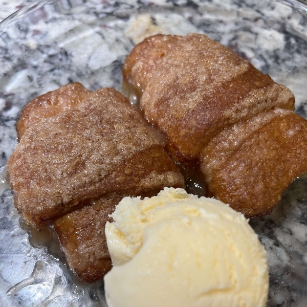 These crescent roll apple dumplings are made with fresh apples and refrigerated dough, baked with butter, cinnamon sugar, and soda for a fall treat.