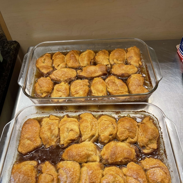Separate crescent roll dough into triangles. Roll each apple wedge in crescent roll dough starting at the smallest end. Pinch to seal and place in the prepared baking dish.