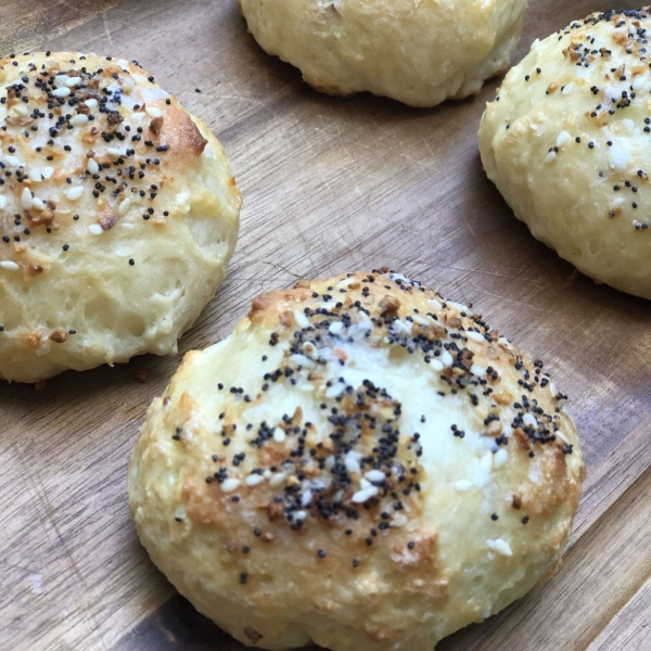 Mix egg, half-and-half, and a pinch of salt in a small bowl. Brush egg wash on top of each dough ball and sprinkle with bagel seasoning.