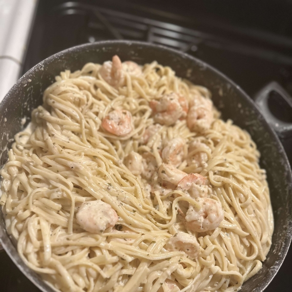 Stir in shrimp and cook until they turn pink, about 5 minutes. Serve sauce over hot linguine.