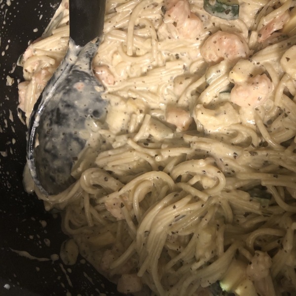 Stir in shrimp and cook until they turn pink, about 5 minutes. Serve sauce over hot linguine.