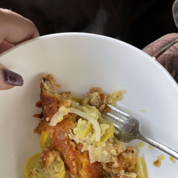 Creamy and comforting, this side dish casserole has tender pieces of butternut squash in a sour cream sauce with herb-flavored stuffing mix.