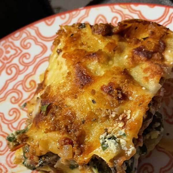 A delicious turkey and spinach lasagna with fat-free ricotta and whole-wheat lasagna noodles.