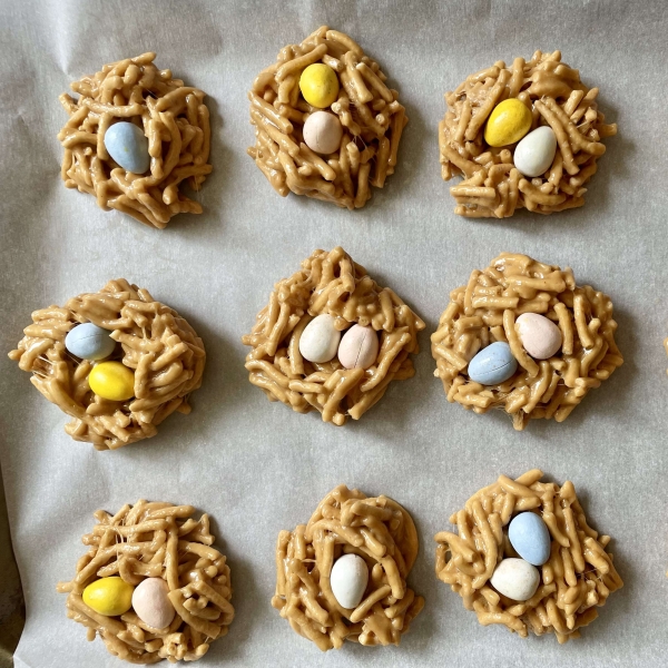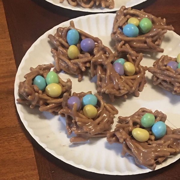 Making 'nests' for candy eggs out of chow mein noodles makes such a cute edible decoration for Easter celebrations!