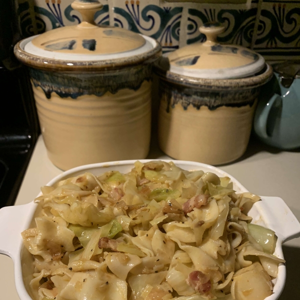 Transfer bacon and onion mixture with drippings into the pot used to cook the noodles and cook and stir cabbage until coated with drippings. Cover pot and cook until cabbage is tender, 10 to 12 minutes, stirring occasionally. Gently stir in noodles and season to taste with salt and black pepper.