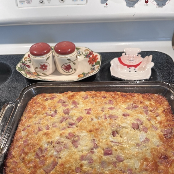 The Swiss and Cheddar cheese in this dish is an excellent combination. This is great for a brunch or holiday breakfast. My mother used to make this every year for Christmas brunch.