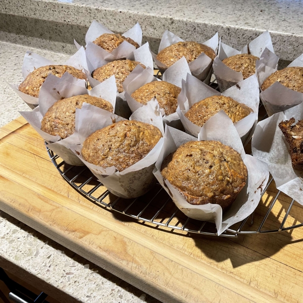 These morning glory muffins are made with a combination of carrots, apple, raisins, coconut, walnuts, and cinnamon. A glorious way to start any day.