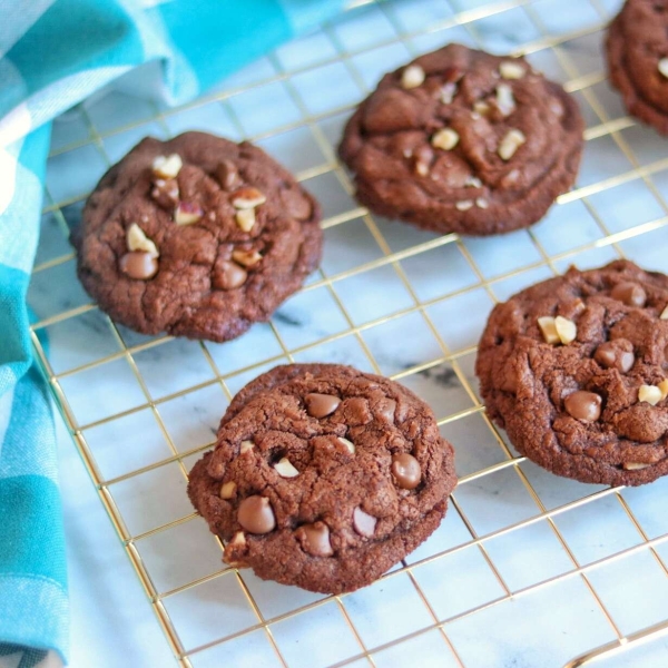 This Nutella cookies recipe is easy to make for a decadent chocolaty treat with chocolate chips and chopped hazelnuts in every bite.