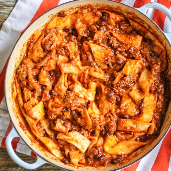 Instead of making traditional burritos for dinner, try this 25-minute, one-skillet, burrito-inspired meal with taco-seasoned ground beef, Cheddar cheese, and black beans.