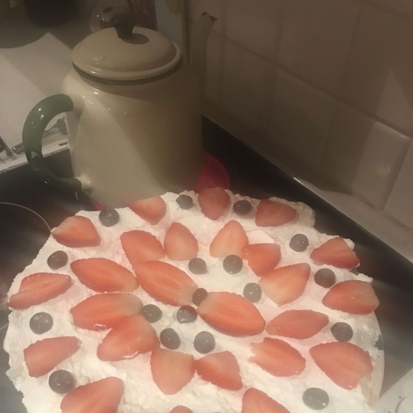 Beat heavy cream in a medium bowl until stiff peaks form; set aside. Remove meringue from the parchment paper and place on a flat serving plate.