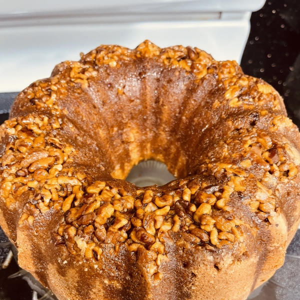 Make cake: Sprinkle walnuts over the bottom of the prepared pan; set aside.