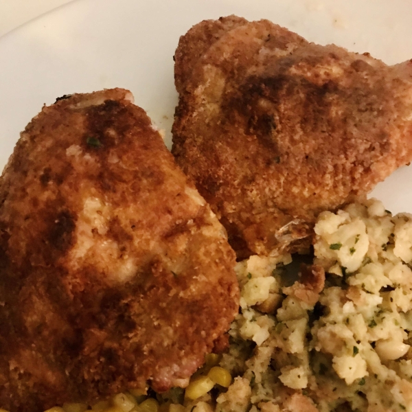 Shake chicken in a blend of flour and seasonings, then bake until crispy on the outside and tender and juicy inside. Easy to prep and delicious!