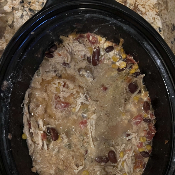 Remove chicken breasts and shred with two forks or cut into bite-sized chunks. Stir chicken back into the slow cooker; mix chili thoroughly.