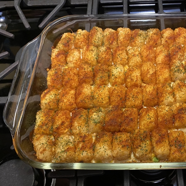 Frozen Tater Tots®, Cheddar cheese, ground beef, and cream of mushroom soup combine for a comfort food classic in this recipe.