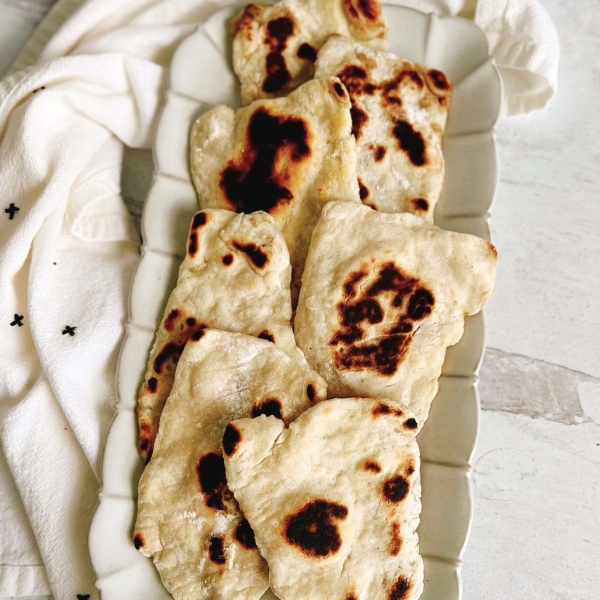 While this two-ingredient Indian naan bread is not totally authentic, it sure works in a pinch and could not be easier.
