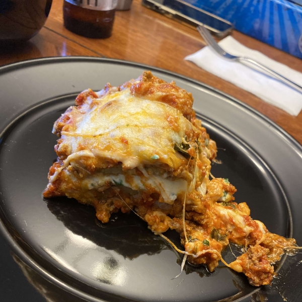 This eggplant lasagna recipe layers slices of eggplant with seasoned ground beef for a delicious Italian dinner that can easily be made vegetarian.