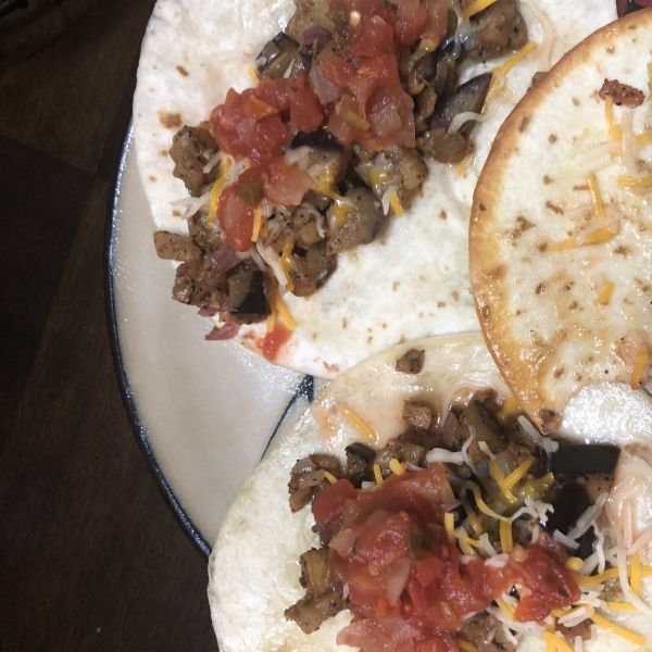 This is a fun, healthy recipe to change up your Mexican meals. Bet you almost can't tell that there isn't meat! Use as substitute for meat in tacos, enchiladas, or your favorite Mexican meals. Fill taco shells with eggplant mixture and top with your favorite fixings!