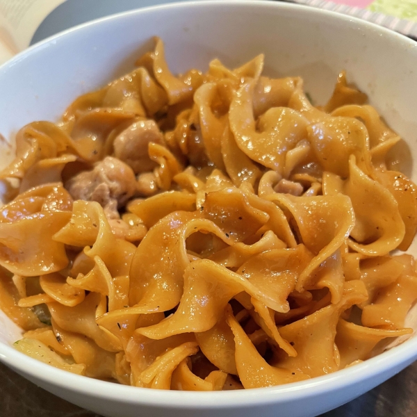 Fill a large pot with lightly salted water and bring to a rapid boil. Cook egg noodles at a boil until tender yet firm to the bite, 7 to 9 minutes. Drain.