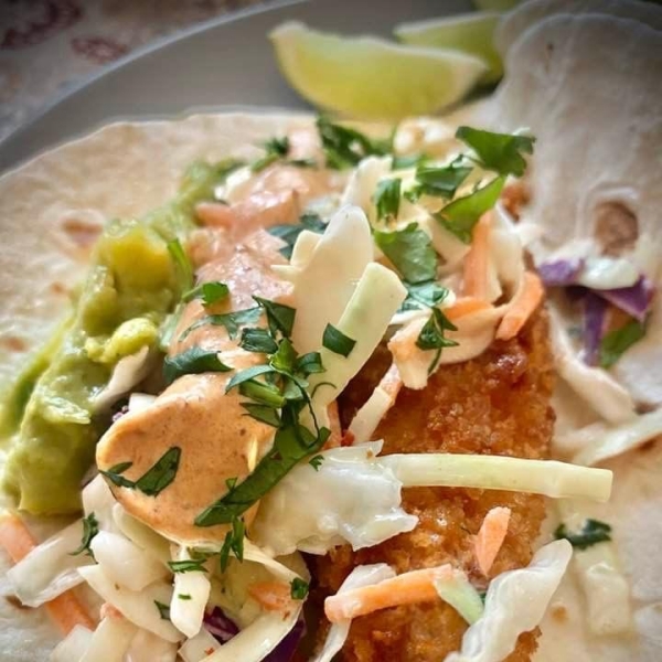I loved a local chain restaurant's fish tacos so much, that I had to try to duplicate them. They combine flour tortillas filled with breaded, fried tilapia, layered with chipotle mayo, topped with napa cabbage, dressed with honey-cumin sauce, and served with pico de gallo, sour cream, chips, and salsa. You'll find them very refreshing and packed full of flavor!