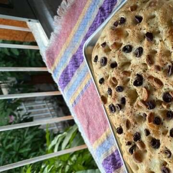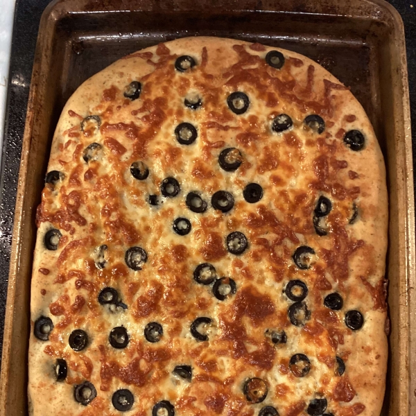 Punch dough down and place on prepared baking sheet. Pat into a 1/2 inch thick rectangle.