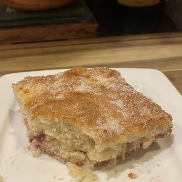 Spread batter into the prepared cake pan. Sprinkle remaining 1/4 cup sugar evenly over the top.