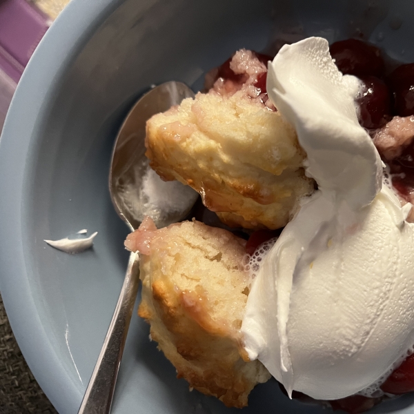 This is a delicious cherry cobbler made with fresh cherries instead of canned. It may take a little longer to make because you need to pit the cherries, but it is well worth it when you taste the finished product.