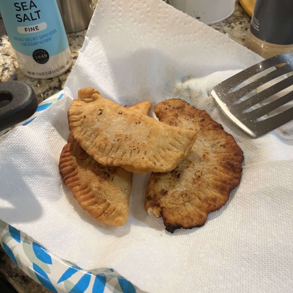 Lower pies carefully into the hot oil in batches. Fry until golden brown, about 2 to 3 minutes on each side. Transfer to a paper towel-lined plate to drain. Repeat with remaining pies.