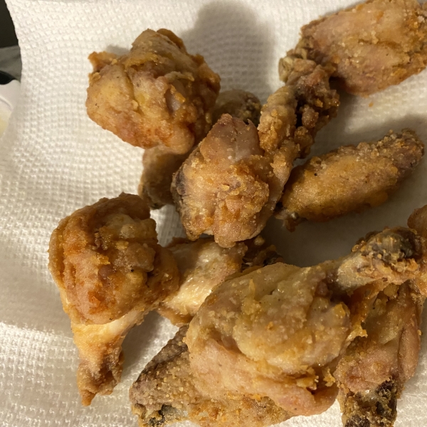 These fried chicken wings are cooked in hot oil, then tossed in Buffalo wing sauce. A double coating of seasoned flour makes these wings extra crispy.