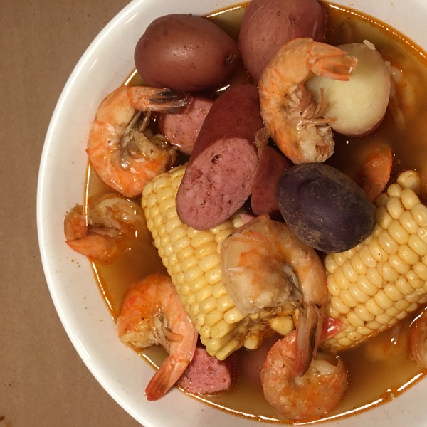 This Frogmore stew can be adjusted to serve any number. I've used this recipe for over 20 years since I moved to South Carolina. Allow 2 tablespoons of seasoning per quart of water. If you cannot find hot smoked sausage, use another smoked sausage, such as kielbasa, and add crushed hot red pepper to the pot.