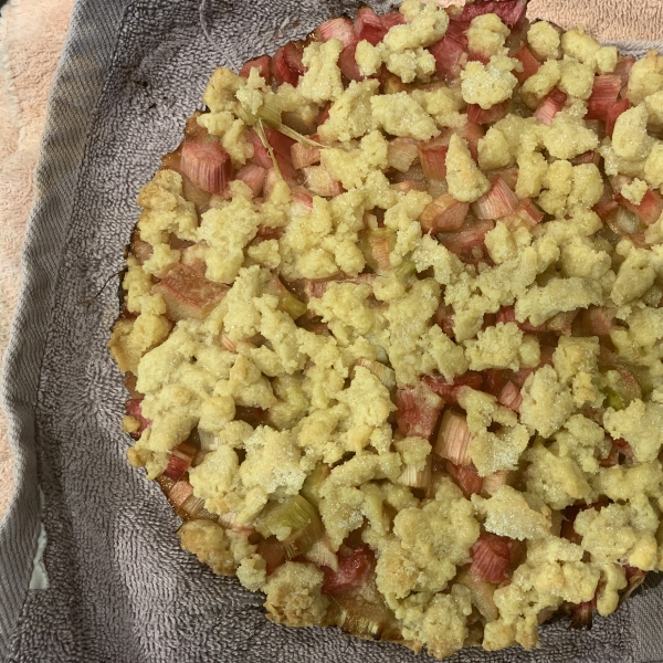 Place 2/3 of the dough in the springform pan and smooth across the bottom. Cover with rhubarb.