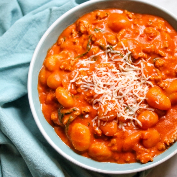 Quick, easy, and delicious, this gnocchi dish combines Italian sausage, spinach, and a cheesy vodka sauce.