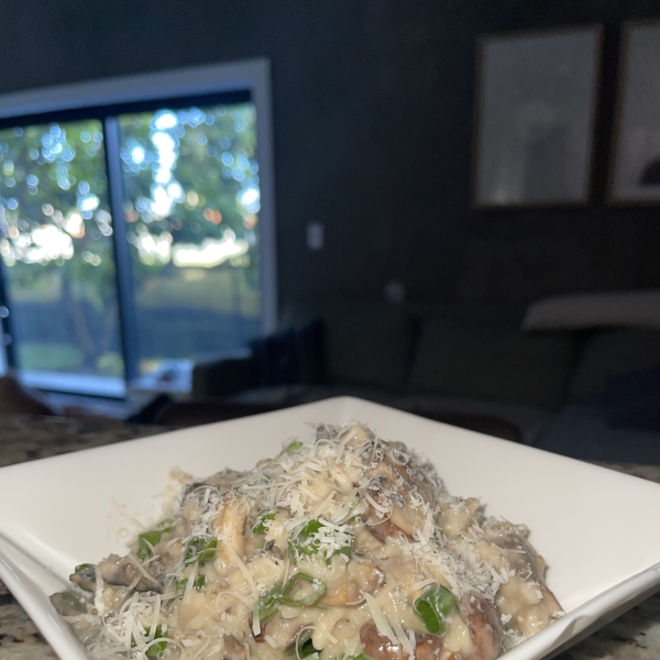 Authentic Italian-style risotto cooked the slow and painful way, but-oh so worth it. Complements grilled meats and chicken dishes very well. Check the rice by biting into it. It should be slightly al dente (or resist slightly to the tooth but not be hard in the center).
