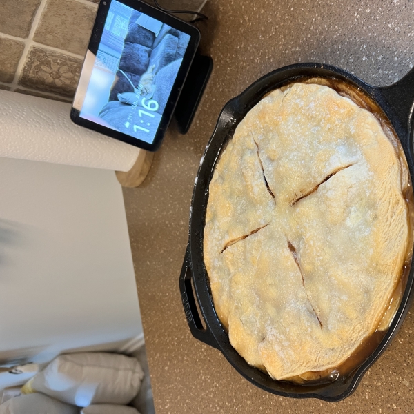 A modern version of an old-time favorite uses premade pie crusts to make this three-layer apple pie, baked in a cast iron skillet.