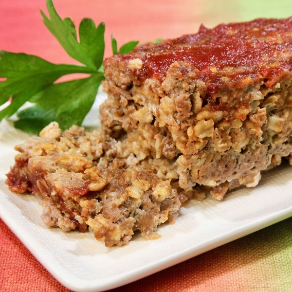 This grandma's meatloaf recipe with oats was tweaked a bit with more beef, seasonings and tomato sauce, resulting in a meal the whole family loves.