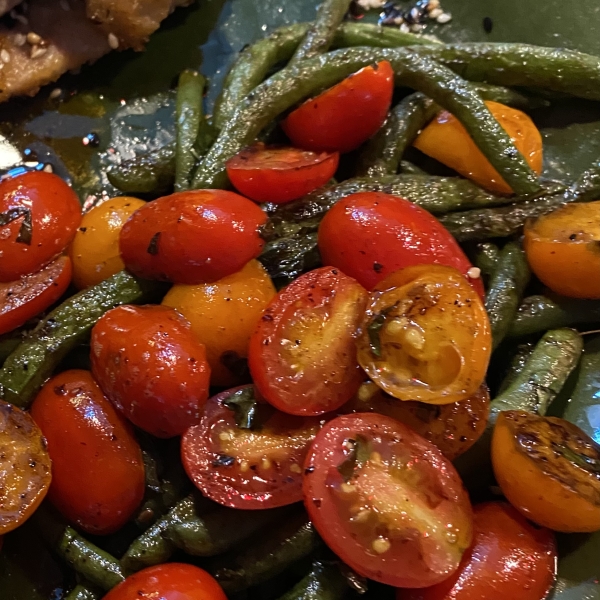 These beans are briefly boiled and tossed with cherry tomatoes in a buttery basil sauce to make the most yummy green beans ever! We serve these at Easter Dinner every year but are a delicious accent to any meal.