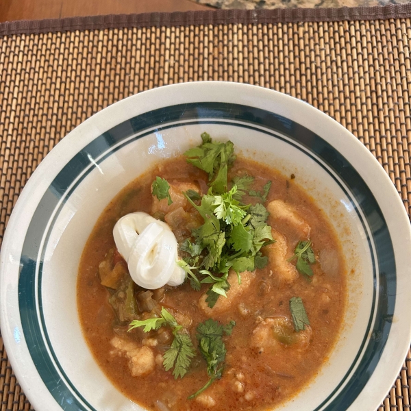 This green chili recipe features roasted Hatch chile peppers, slow-cooked with cubes of pork, garlic, tomatoes, and spices for a crowd-pleasing meal.