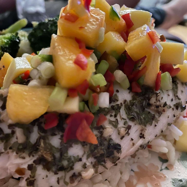 This spicy mango salsa for fish can be made a day ahead and paired with herb-marinated and grilled tilapia fillets for a wonderful, go-to summer meal.