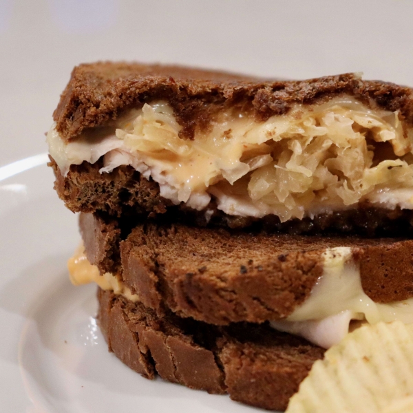 Toasted, salty, and tangy, reuben sandwiches are classic! This recipe is made with turkey instead of the corned beef and mayonnaise with hot sauce instead of Thousand Island dressing. This updated Reuben will satisfy with a full and slightly spicy flavor.