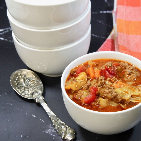 This hamburger and vegetable soup with cabbage is perfectly seasoned and easy to make with fresh veggies, a tomato-based broth, and a splash of wine.