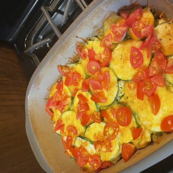 Remove from the oven and sprinkle with chopped tomato before serving.