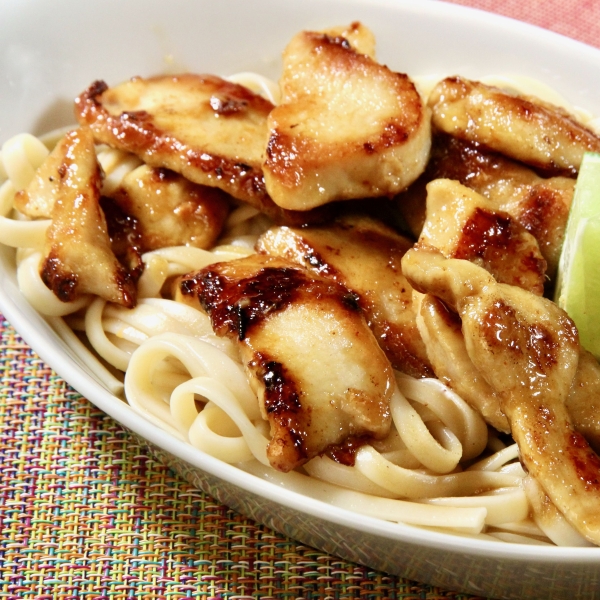 A sweet and sour sauce made with honey and lime juice coats strips of chicken in this easy stovetop dish for two.