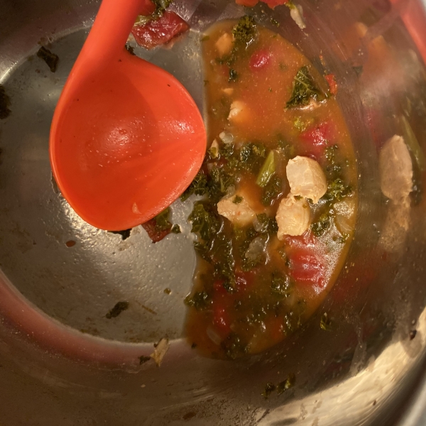 Turn on a multi-functional pressure cooker (such as Instant Pot®) and select Saute function. Melt butter and cook onion until soft and tender, about 3 minutes. Add chicken; cook until golden and crispy, about 5 minutes. Place diced tomatoes, kale, chicken broth, salt, garlic powder, oregano, and black pepper in the pot. Close and lock the lid. Select high pressure according to manufacturer's instructions; set timer for 10 minutes. Allow 10 to 15 minutes for pressure to build.