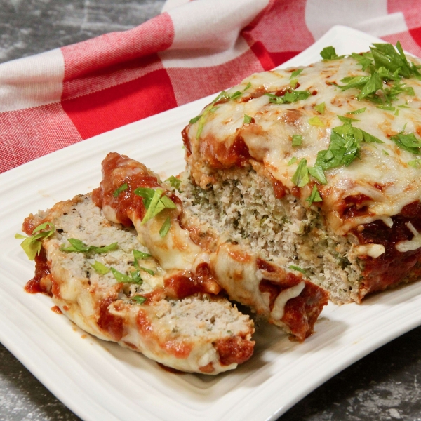 Bread crumbs, Parmesan cheese, and seasoning add Italian flavor to this turkey meatloaf that's topped with tomato sauce and mozzarella cheese.