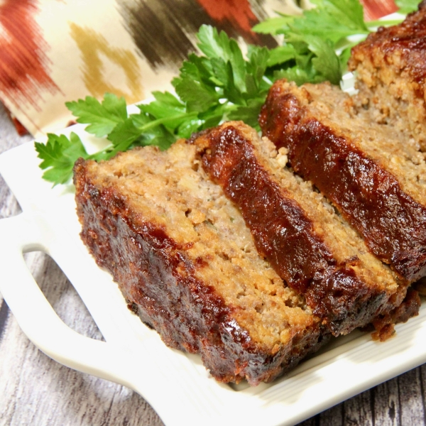 Ground beef, ketchup, and Japanese bread crumbs (panko) are mixed with a couple of eggs and some seasonings to yield an easy, delicious meatloaf.