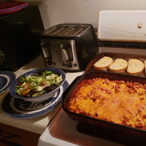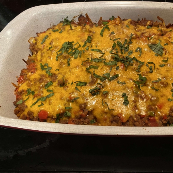 Bake in the preheated oven for 45 minutes. Remove the foil and sprinkle Cheddar cheese over the casserole. Continue to bake until Cheddar has melted, about 5 minutes. Rest for 10 minutes before serving.