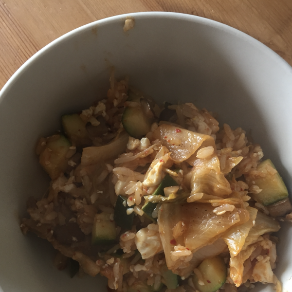 Kimchi fried rice is a delicious way to use leftover rice and kimchi; spice things up with Korean chile paste and top with a fried egg for a quick and easy dinner.