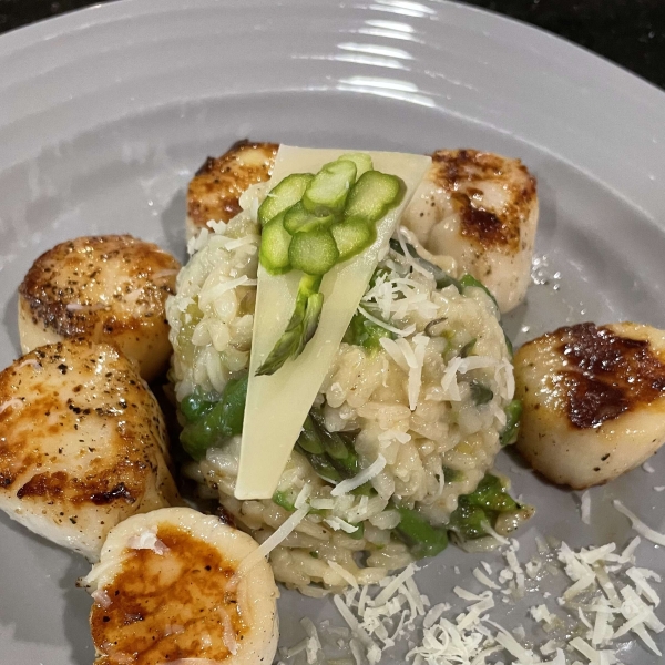 This asparagus risotto with Parmesan cheese is deliciously creamy and packed with a fresh lemon flavor that adds extra zing to a springtime dish.