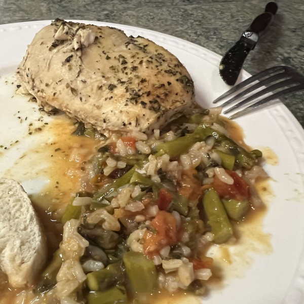 Stir in white wine and simmer until it has mostly evaporated, then stir in 1/3 of the hot chicken broth; continue stirring until rice has absorbed liquid and turned creamy. Repeat this process twice more, stirring constantly. Stirring in the broth should take 15 to 20 minutes in all. When finished, rice should be tender yet firm to the bite. Stir in asparagus.