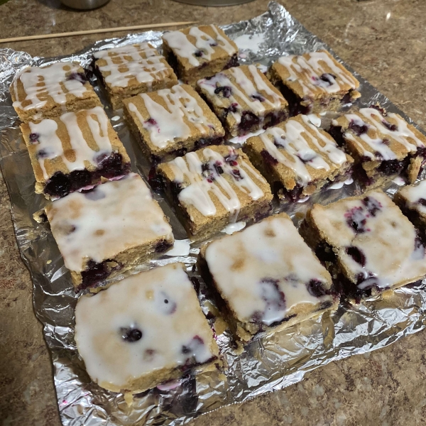 To make the glaze: Whisk powdered sugar and lemon juice together in a small bowl until smooth. Drizzle over the blondies. Slice and serve.